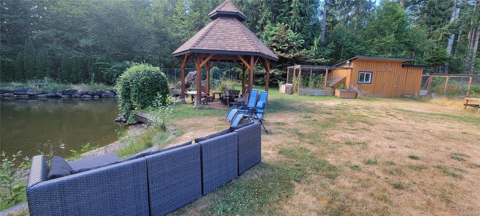 Experience the ultimate retreat with two charming homes on 3.02 acres of park-like beauty. The main residence boasts 3 bedrooms, 2 baths, a cozy gas fireplace, and a heat pump for year-round comfort. The second home offers 1,188 sqft with 3 bedrooms, paint, and inviting decks. Enjoy a fenced acre perfect for pets and a serene forested area for privacy. Indulge your green thumb with a diverse orchard and 32 raised garden beds with irrigation. A stunning 14-ft deep pond with a waterfall and koi adds to the tranquility, while cozy sleeping cabins and gazebos with fire pits provide ideal spots for relaxation in nature. Photos are not current.