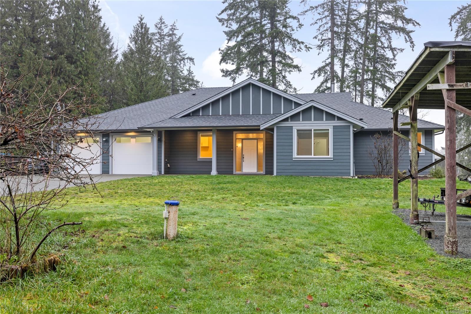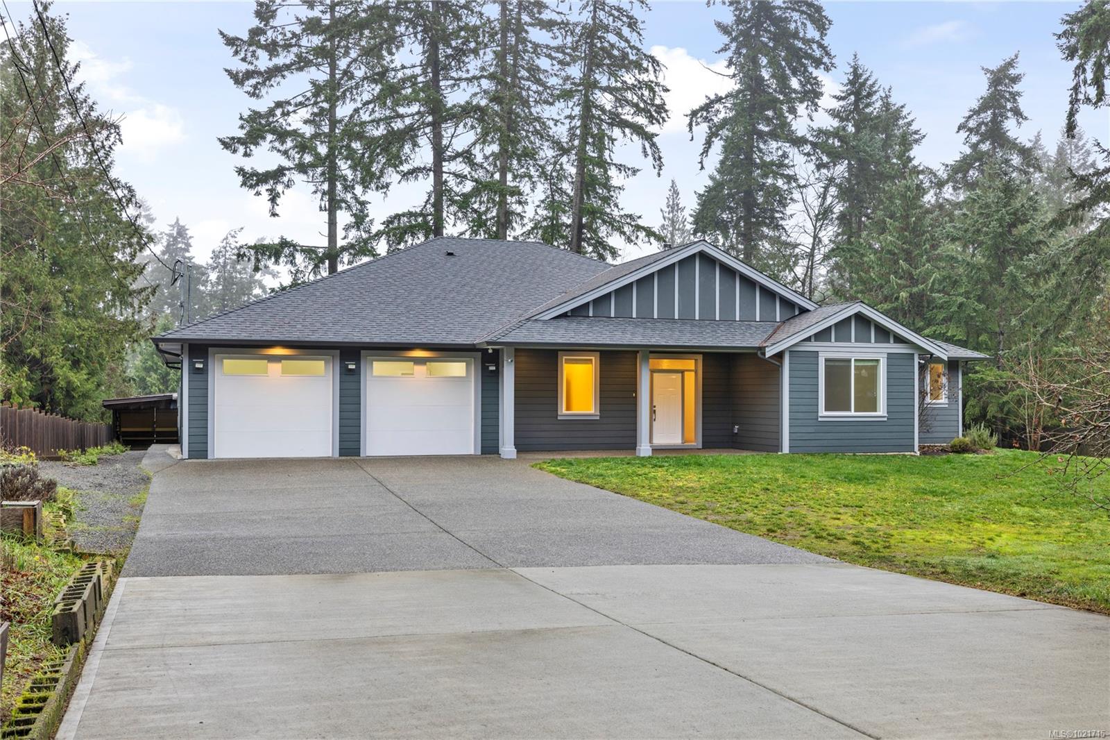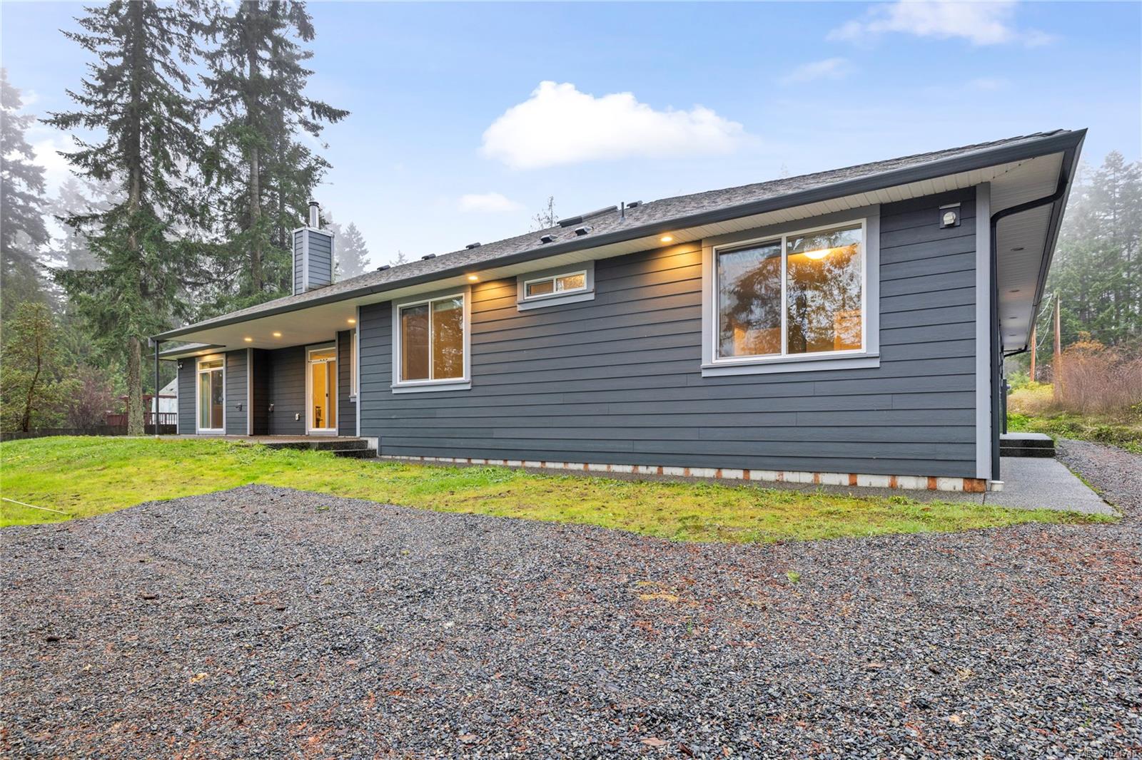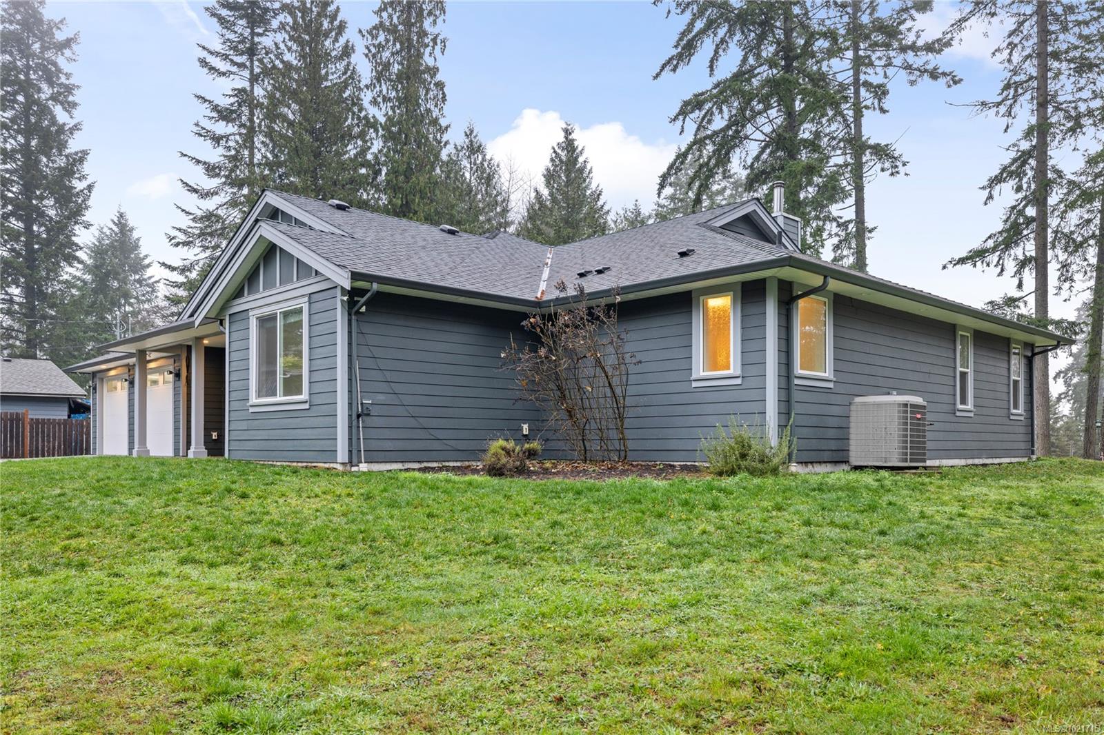 Gorgeous Modern Home With Detached Workshop in Quiet South Nanaimo Neighbourhood, Experience stylish contemporary living on a private 1-acre lot with mature trees and plenty of space. This freshly painted home features a bright, open great room with a trayed ceiling and a cozy, efficient wood stove. The gourmet kitchen is equipped with a large island, solid surface countertops, and dual ovens—perfect for entertaining. The primary suite offers a walk-in closet and a luxurious five-piece ensuite, while two additional bedrooms share a Jack-and-Jill bathroom. A flexible office or bedroom with a walk-in closet provides extra storage or workspace. Step out to the partially covered patio for seamless indoor/outdoor living. Additional highlights include a large garage with sink, a detached workshop/studio, and a spacious unfinished 6 ft crawl perfect for a hobby enthusiast and tons of storage.