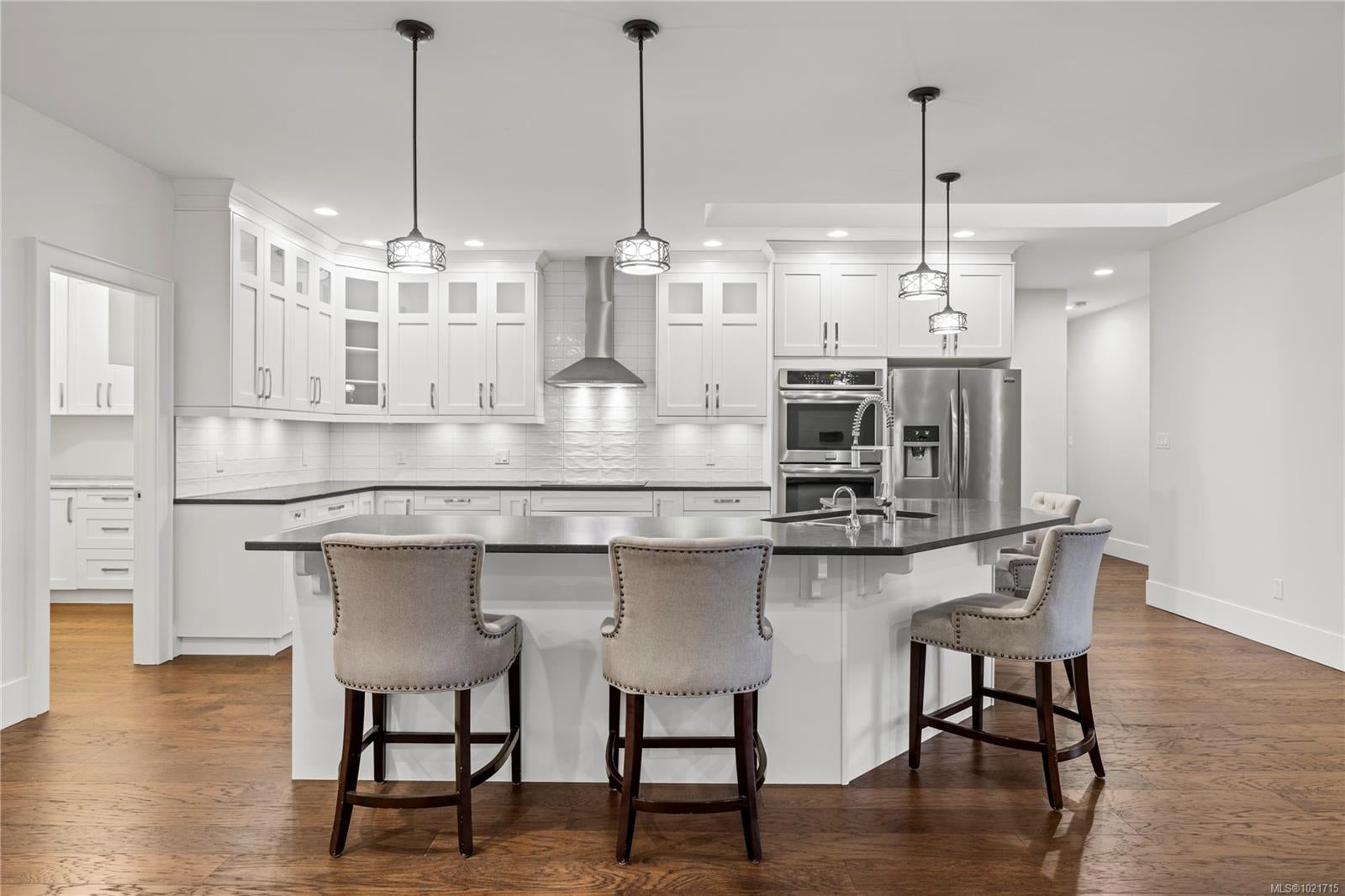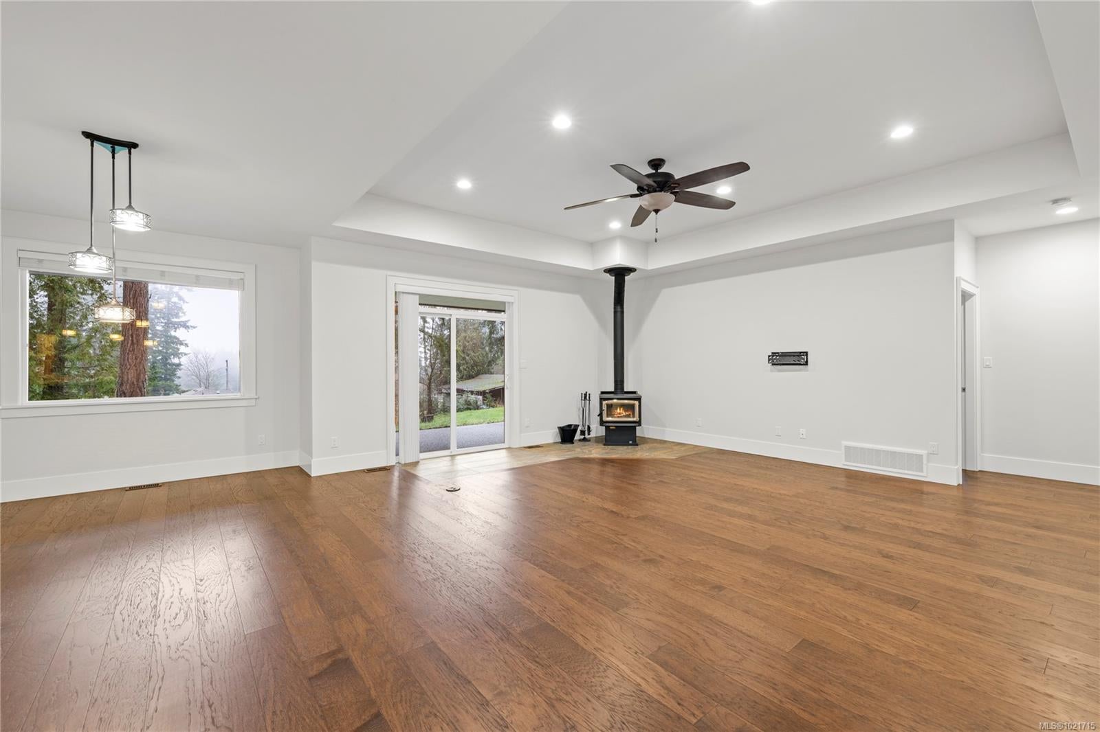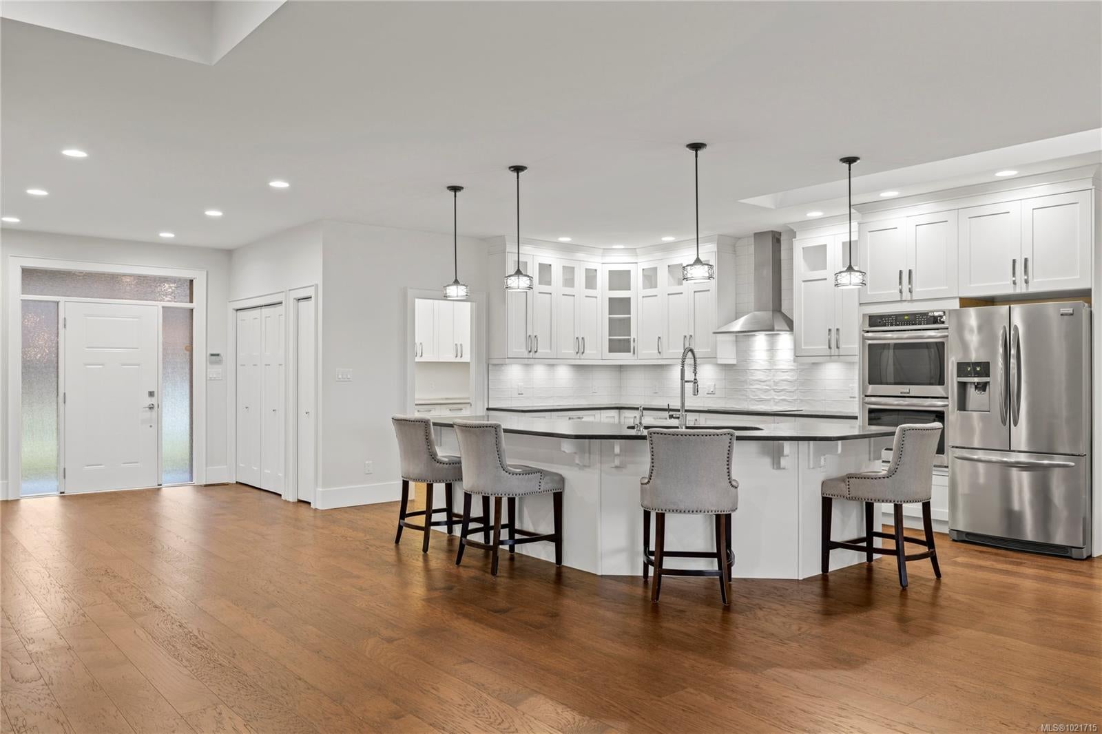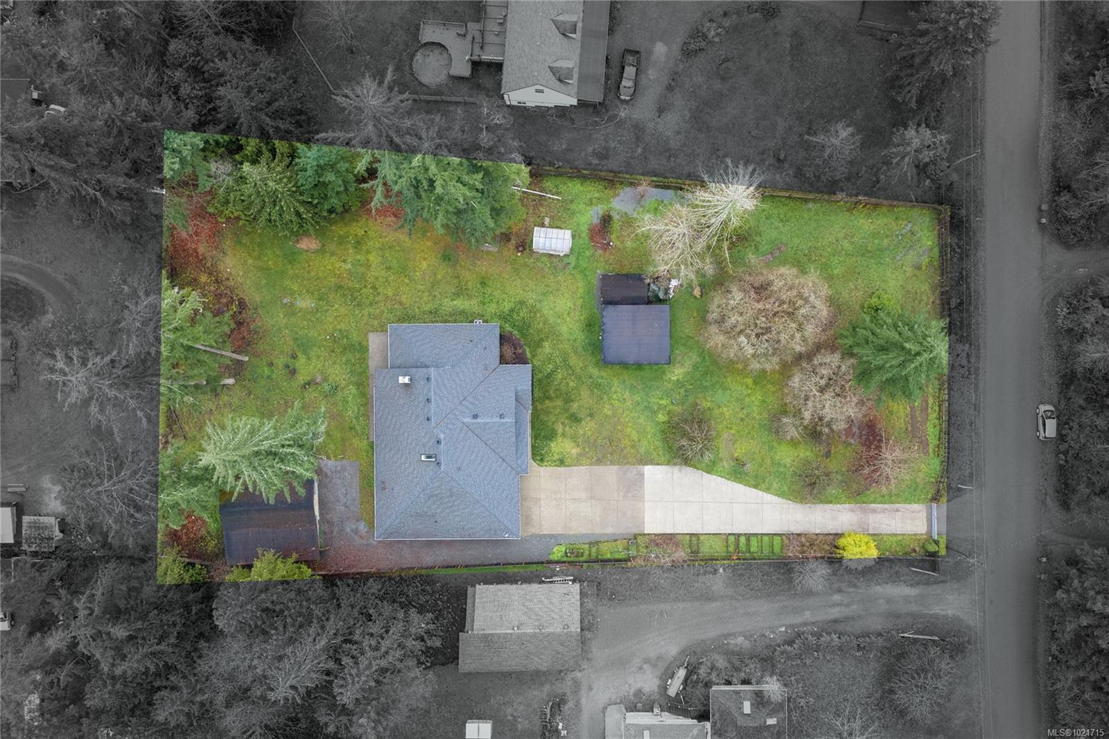 Gorgeous Modern Home With Detached Workshop in Quiet South Nanaimo Neighbourhood, Experience stylish contemporary living on a private 1-acre lot with mature trees and plenty of space. This freshly painted home features a bright, open great room with a trayed ceiling and a cozy, efficient wood stove. The gourmet kitchen is equipped with a large island, solid surface countertops, and dual ovens—perfect for entertaining. The primary suite offers a walk-in closet and a luxurious five-piece ensuite, while two additional bedrooms share a Jack-and-Jill bathroom. A flexible office or bedroom with a walk-in closet provides extra storage or workspace. Step out to the partially covered patio for seamless indoor/outdoor living. Additional highlights include a large garage with sink, a detached workshop/studio, and a spacious unfinished 6 ft crawl perfect for a hobby enthusiast and tons of storage.