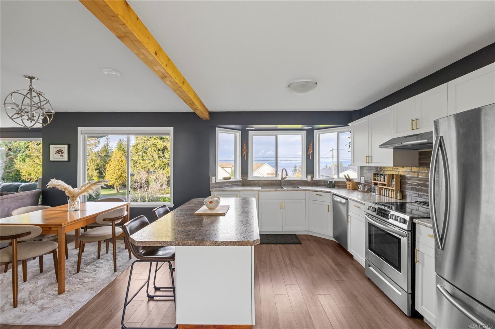 Enjoy panoramic ocean views from this beautifully updated, custom-built home, perfectly positioned on a sunny half-acre in the serene Dashwood community. The main level features 3 bedrooms and 2 bathrooms, including a bright primary suite with its own ensuite and direct access to the covered deck. An open-concept design highlights the natural light and coastal scenery, extending effortlessly to the deck for easy indoor-outdoor living. The lower level offers a walk-out one-bedroom suite complete with its own laundry—an ideal setup for guests, extended family, or potential rental income. Thoughtfully cared for inside and out, the property includes a large, mature garden, plenty of space for RV parking and storage, and a peaceful rural setting just minutes from amenities. Located on the school bus route, only 3 minutes to the elementary school, and just two doors from the community park, this property perfectly combines comfort, privacy, and convenience. Call Robyn 250-240-1414