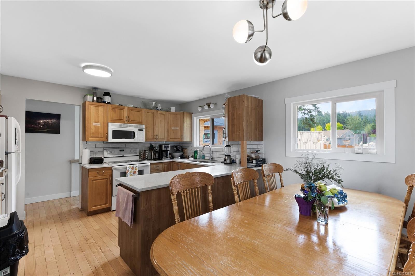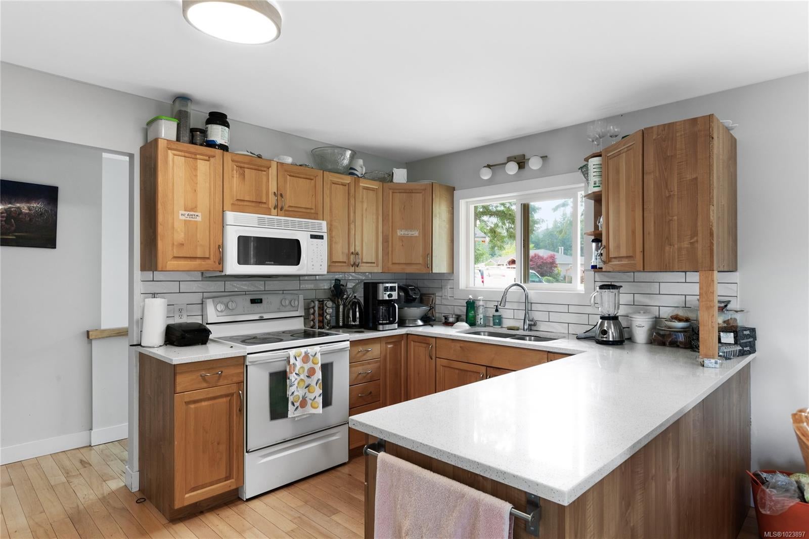 Family Home Near Westwood Lake! This spacious home, situated in a well-established neighborhood, underwent extensive updates in 2022. Featuring 4 generous bedrooms and 2 updated bathrooms, this home offers comfort and style. Inside, you will find a bright living room with maple hardwood floors, a charming brick fireplace and a large picture window. The kitchen boasts beautiful wood cabinets, and the rec room downstairs provides ample space for relaxation and entertainment. Enjoy the sunny deck that overlooks a large backyard, with the potential to add a carriage home (confirm desired details with the city). Nature enthusiasts will love the proximity to Westwood, Mt Benson, and Ammonite Falls, all in walking distance. The home's location on a main bus route, with a stop right outside, adds to its convenience. Being less than ten minutes from downtown Nanaimo, aquatic and ice centers, schools, and shopping ensures that all your needs are met with ease. Don't miss this fantastic opportunity, for more information contact BJ Estes at 250-755-6106