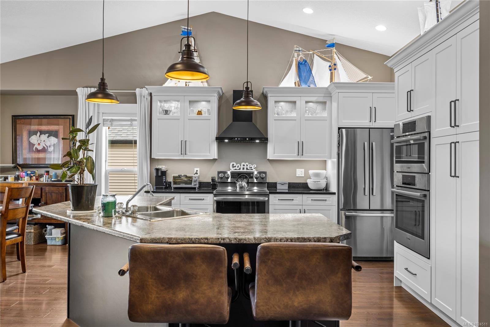 This well designed 6 bedroom, 3 bathroom Nanaimo home offers a spacious 2 bedroom suite and an excellent central location close to the university, Westwood lake, recreation and more! The upper level features a bright open plan with a generous great room, 9 ft vaulted ceilings, and a natural gas fireplace. The updated kitchen includes a functional island with eating bar and flows seamlessly into the dining area, where sliding doors open to a large covered deck ideal for indoor and outdoor entertaining. The primary suite offers a walk in closet and a skylit five piece ensuite with soaker tub and separate shower. Two additional bedrooms and a full main bath complete the main level. Downstairs includes a large rec room, fourth bedroom, full bath, and ample storage. The sellers have used this space as a successful Bed and Breakfast, bringing in additional income. With a separate entrance, the fully self contained legal 2 bedroom, 1 bathroom suite includes its own kitchen, laundry, and covered patio, perfect for extended family or rental income. Set on a 0.19 acre lot with garden space, RV parking, and a quiet cul de sac location, this home is close to Westwood and Cathers Lake trails, local parks, the harbour, and Old Town Nanaimo. For more information contact BJ Estes at 250-755-6106.