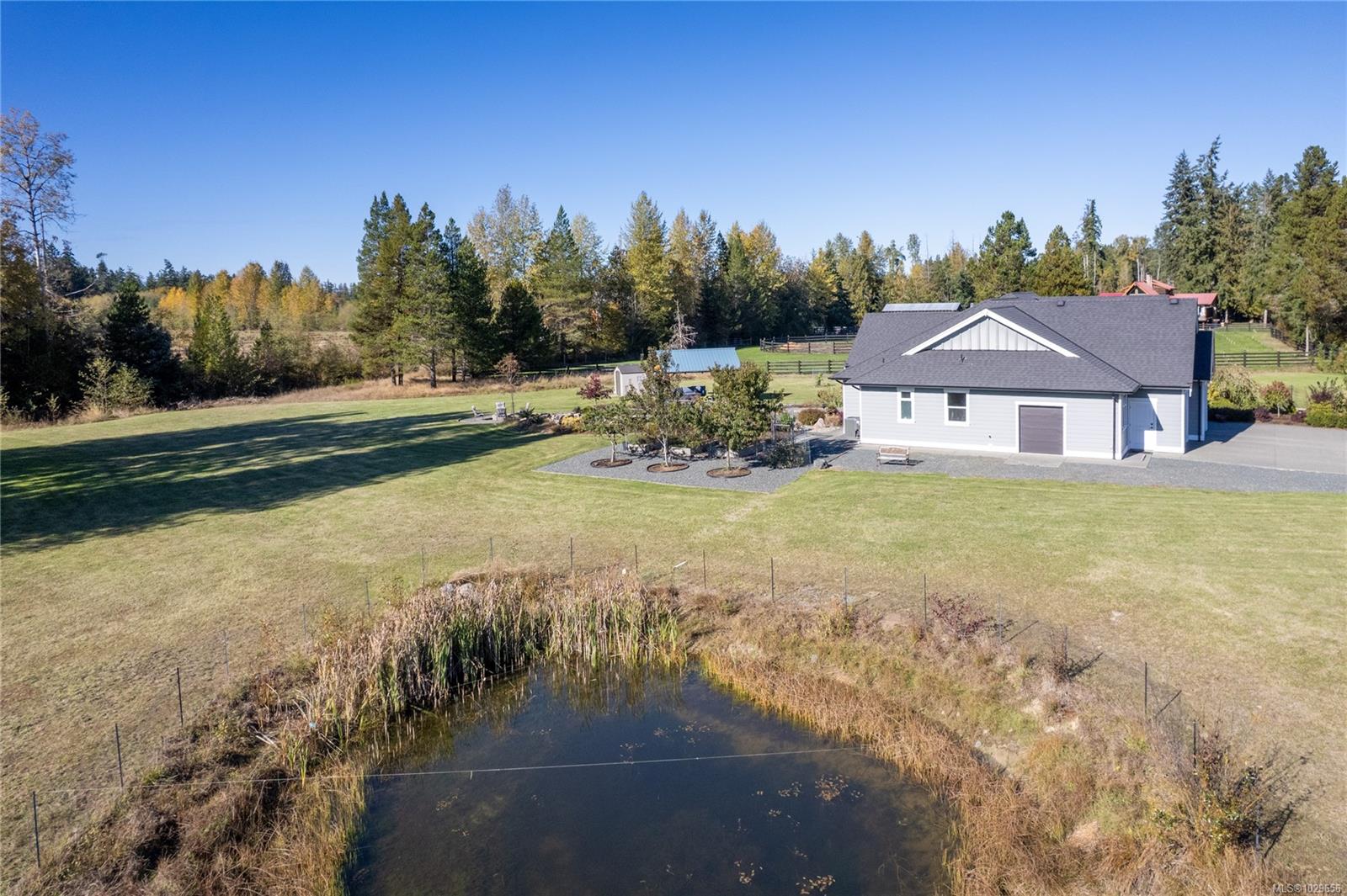 Experience serene luxury in this private 2.5-acre estate in sought-after Virginia Estates, showcasing expansive grounds and a tranquil pond. This stunning 4-bedroom, 3-bathroom rancher offers over 2,200 sq ft of refined living space with an exceptional open-concept design. Enjoy elegant finishes throughout, including engineered hardwood floors, stone countertops, floor-to-ceiling windows, and a striking stone fireplace. With dual primary suites, a spectacular ensuite, tray ceilings, and skylights, every detail reflects quality craftsmanship. The property is fully fenced and gated, surrounded by immaculate landscaping with a covered patio for seamless indoor/outdoor living, a charming pergola, fire pit area, and a fenced garden. Built to the highest standards, this stunning home offers peace, privacy, and breathtaking natural beauty, and represents a rare opportunity to own a true mountain view estate.